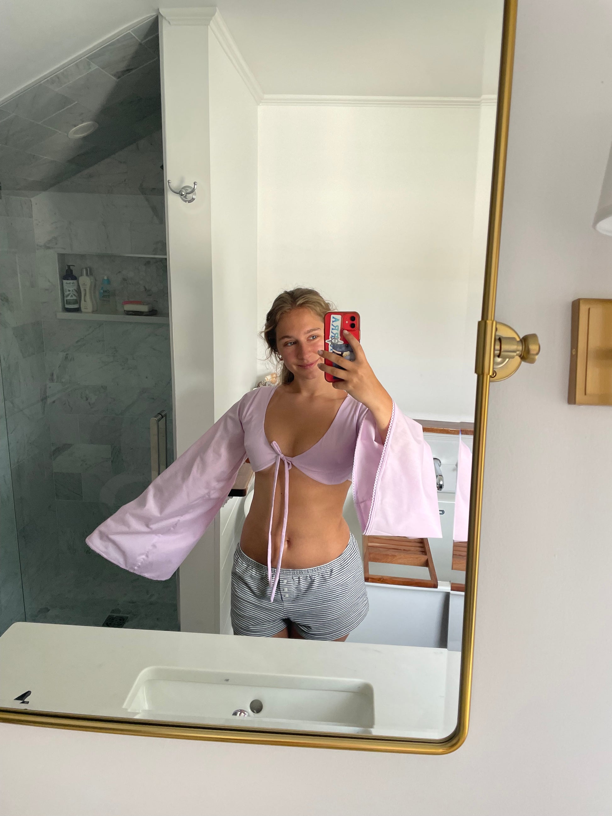 Long bell sleeve top with tie front enclosure!